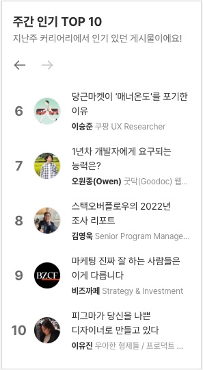 올해 8월 부터 커리어리 큐레이터로 활동을 시작했다. 커리어리 라는 커리어 플랫폼에서 내가 얻은 인사이트를 공유하고 기술&커리어 관련된 고민들에 대한 답변을 해 드리는 활동이다. 커리어리를 하면서 내가 글을 쓰지만 이보다 한 열 배 이상으로 다른 분들의 글을 보면서 내가 배워가는 것 같다. 여기서 나처럼 큐레이터로 활동하시는 분들과 커뮤니티도 운영이 되고 있는데 아직은 오픈카톡방에서 소통하는 정도이다. 정말 대단하신 엔지니어, 디자이너, PM 등 직군의 분들이 계신데 기회가 된다면 23년에는 직접 만나서 네트워킹도 해보고 싶다.