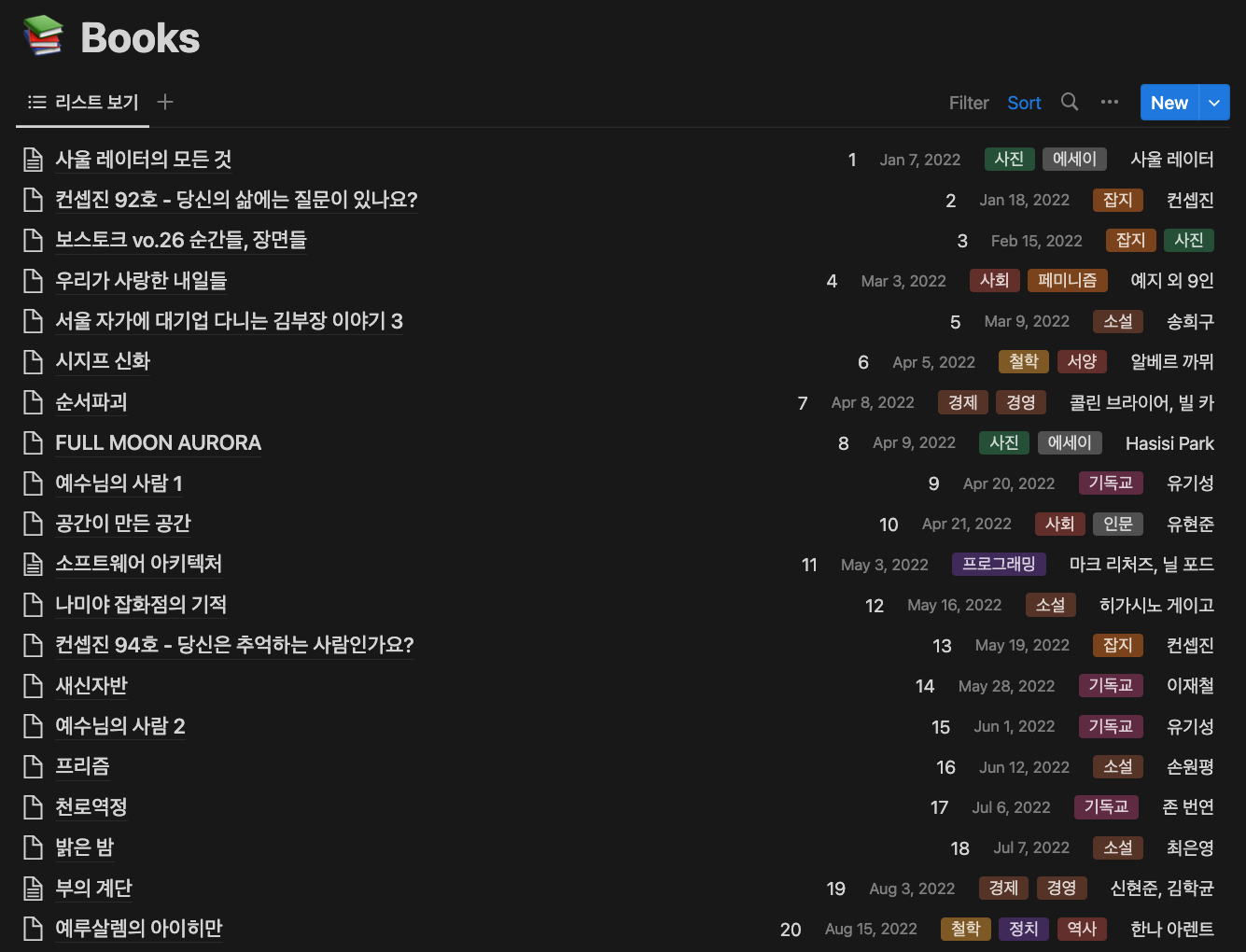 올 한 해 32권의 책을 읽었다. 권수는 적지 않지만, 퀄리티는 다소 아쉬웠다. 권수를 채우기 위해 책을 읽은 적도 있었고, 정독을 하지 못한 책도 있었다. 특히 인문학 관련된 책들을 생각보다 많이 못 읽었고, 읽은 것들도 인상적이지가 않아서 그 점이 너무 개인적으로 아쉽다. 내년에는 내 나이만큼 (30권 이상) 읽으면서 좀 더 깊이있는 인사이트를 얻을 수 있는 책들을 많이 골라서 독서의 퀄리티를 높여보고 싶다.