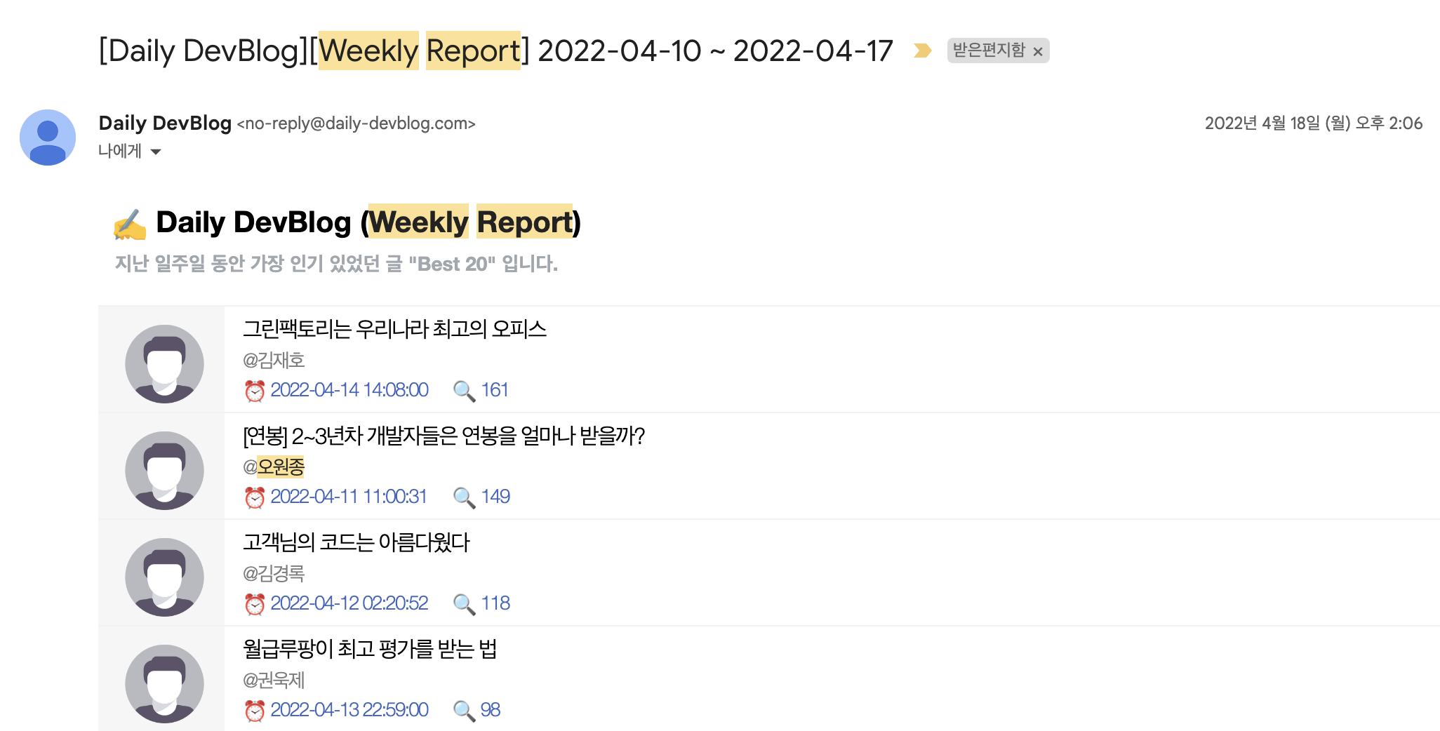 [연봉] 2~3년차 개발자들은 연봉을 얼마나 받을까? (Daily DevBlog (Weekly Report) 4월 둘째 주 2위)