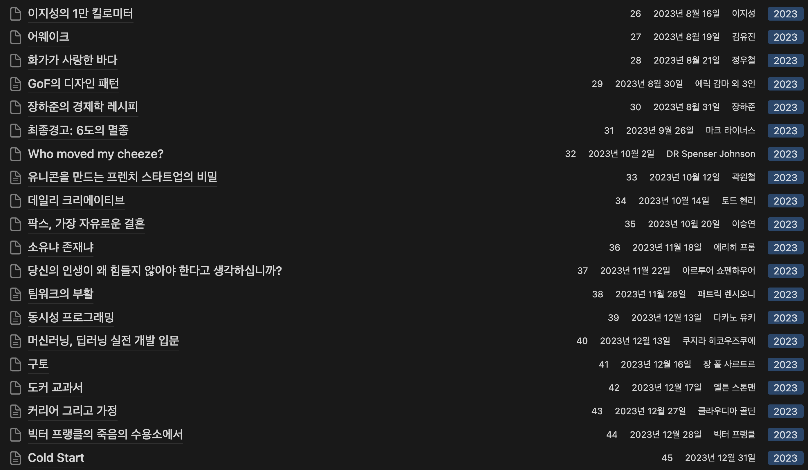 올 한 해는 총 45권의 책을 읽었다.
