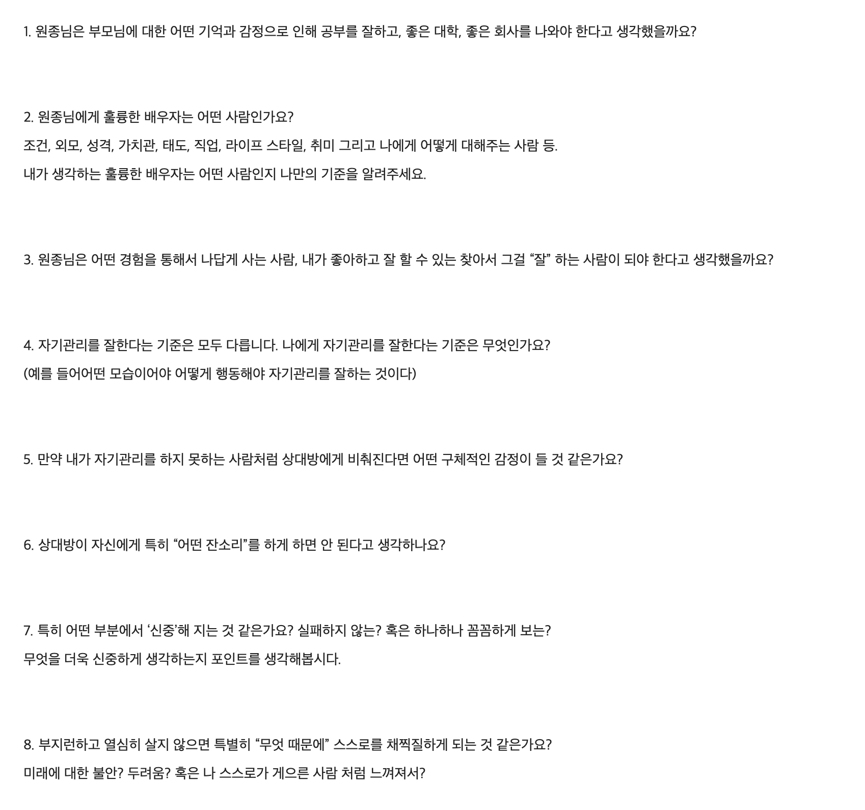 나라는 사람에 대해서 구체적으로 잘 알아갈 수 있는 시간이어서 안다린님께 다시 한 번 정말 감사하다. 비록 이 시기에 회사 일이 많아서 더 많이 시간을 내고 참여하지는 못 했지만, 짧은 시간 나를 돌아볼 수 있던 유익한 시간이었다.