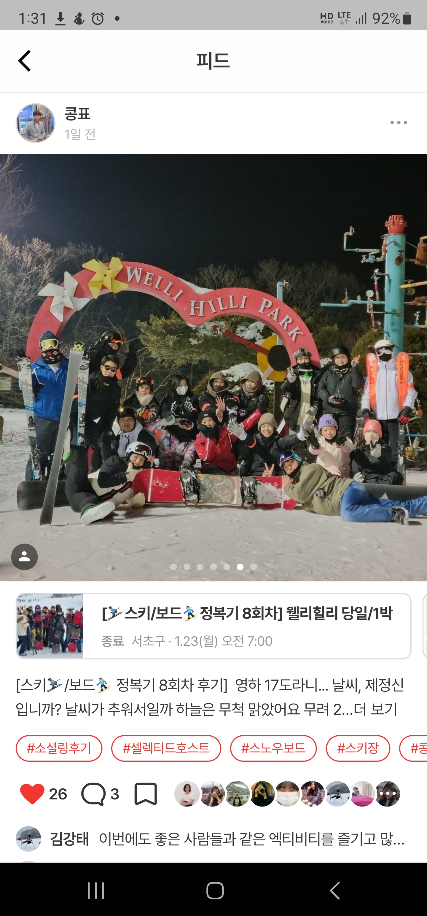 참여했던 모임들은 대부분 경험이 좋았다. 독서 모임은 일회성 모임이었는데 새로운 사람들과 각자 자신이 읽은 책 소감을 나누고 서로의 인사이트를 다양하게 들을 수 있어서 좋았다. 영화 모임은 마치 대학교 MT 온 것 같은 느낌이 들 정도로 오랜만에 밤 새서 재밌게 놀았다. 스키장 모임도 주변에 스키장을 친구들과 가려면 스케줄 잡기가 쉽지 않은데, 이렇게 스키를 좋아하고 잘 타는 사람들과 원하는 시간에 갈 수 있다는 점이 굉장히 편했다. 웰리힐리 리조트도 처음 가보았는데 스키를 타기 너무 좋은 환경이었다.