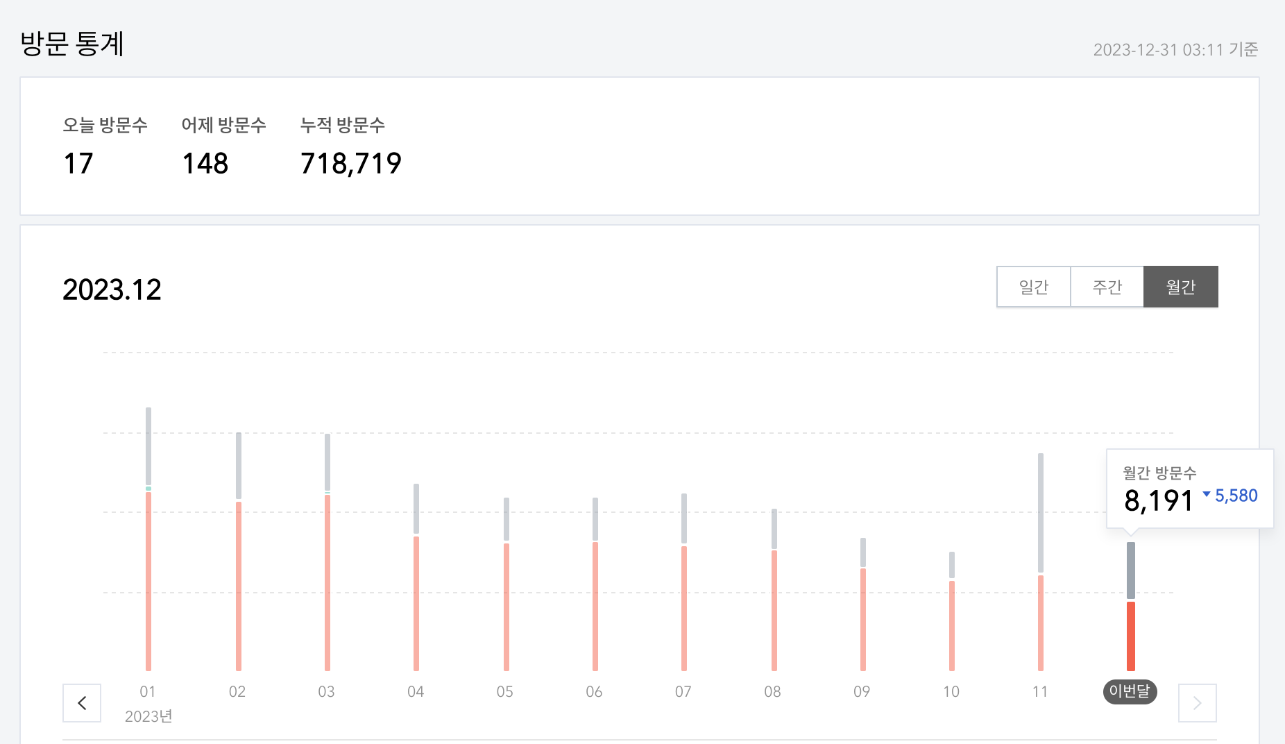 누적 방문수는 718,719명으로 내년에 100만명을 돌파하는 걸 목표로 해 보려고 한다.